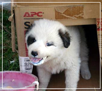 Tu mi ih bude jako žao i, dok sam razmišljao kako spasiti ovu štenad i kako im pomoći, odjednom, ispod jednog od montažnih objekata, pojavi se bijelo štene. Odmah mi je zapalo za oko jer, osim što je jedino od svih bilo bijelo, imalo je crnu "fleku" oko desnog oka i crne uši. Jako neobično i simpatično štene.