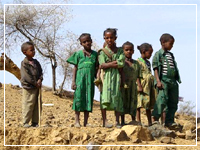 Kako smo više odmicali pitali smo se da li će se uskoro pojaviti, već iz daljine prepoznatljiva, kao snijeg bijela so. Zaobilazimo planine i stjenovita brda, u nadi da, već iza sljedećeg brda, ćemo ugledati naše odredište. Put se razvukao. Već, skoro, 8 sati se vozimo po kamenjaru. Iza posljednjeg brda otvara se pustinja, ravnica. Vozimo tako i ugledamo jedno Afarsko selo. Kućice prekrivene govedjom kožom a ispod je konstrukcija od bambusa. Takvih kućica je bilo 5-6 na jednom mjestu, usred ničega.