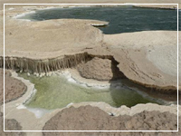 Malac nam pokazuje put i ubrzo stižemo. Zaustavljamo se 30-ak metara od jednog povećeg jezerceta. Izlazimo iz auta i prilazimo da vidimo to i izbliza. Voda je u jezeru, prečnika 6 do 7 metara, izvirala, te tako podsjećala na ključanje vode u nekoj ogromnoj šerpi. Istovremeno, voda je usljed velikih vrućina isparavala te je ostajala samo so koja je formirala čudne oblike na „obalama” jezera. Malac, naš vodič, nam uspijeva objasniti da se dešavalo da kamila upadne u neko od ovakvih jezera i više se ni ne pojavi. Na taj komentar mi, kao po komandi, napravimo korak unazad.